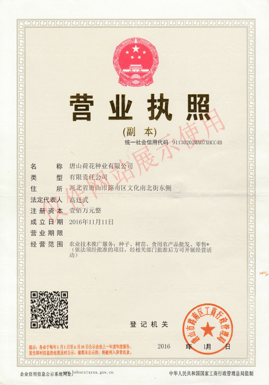 唐山荷花種業(yè)有限公司始創(chuàng)于1984年,一直秉承“科技為先,誠(chéng)信為本”的發(fā)展指導(dǎo)戰(zhàn)略,注冊(cè)商標(biāo)“荷花”牌,經(jīng)過(guò)三十多年的發(fā)展,建立了從親本選育、試驗(yàn)示范、生產(chǎn)檢驗(yàn)、精選加工、推廣銷(xiāo)售及農(nóng)業(yè)技術(shù)咨詢(xún)一體化的經(jīng)營(yíng)體系,目前擁有試驗(yàn)基地、繁育基地、制種基地、及規(guī)模化種子冷貯藏庫(kù),完善了由科研、檢驗(yàn)、生產(chǎn)、銷(xiāo)售各個(gè)配套環(huán)節(jié)。荷花牌系列種子正是我們?cè)趫?jiān)持“誠(chéng)信、品質(zhì)、開(kāi)拓、創(chuàng)新”的企業(yè)精神下打造的種子品牌,如今,在全國(guó)已形成強(qiáng)勢(shì)品牌效應(yīng),是一個(gè)值得信賴(lài)與具有一定影響力的種子品牌,在全國(guó)廣大用戶中贏得了良好的口碑和信譽(yù)... ...